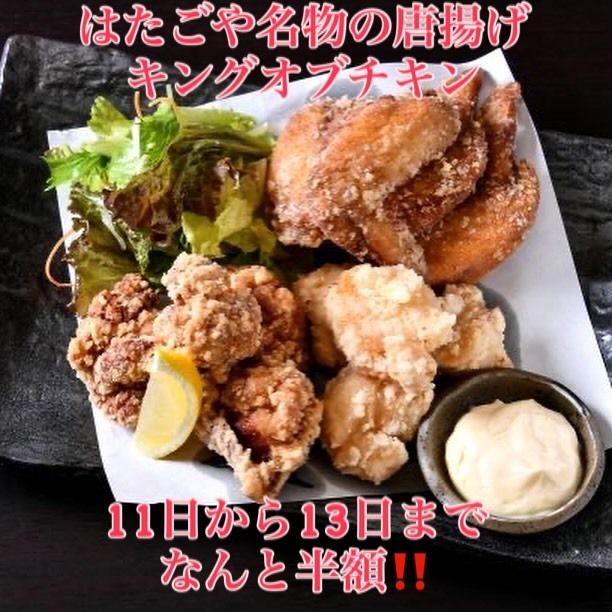 ・はたごや名物唐揚げのキングオブチキンを半額にて提供